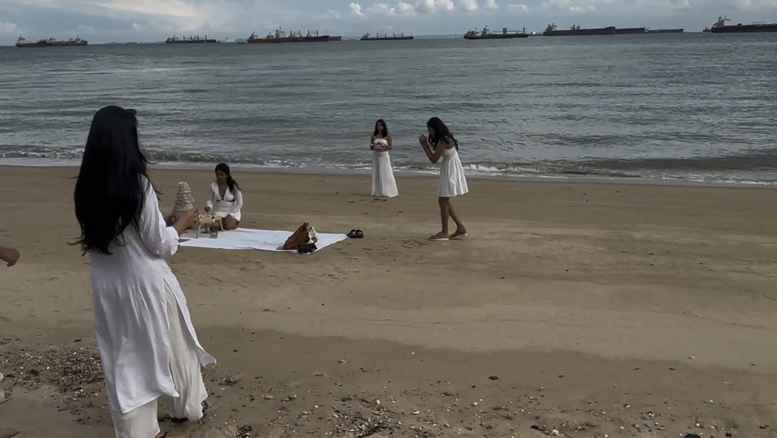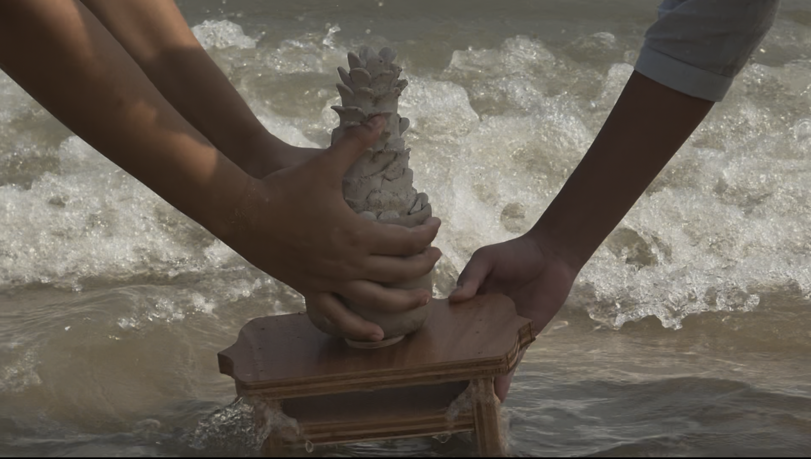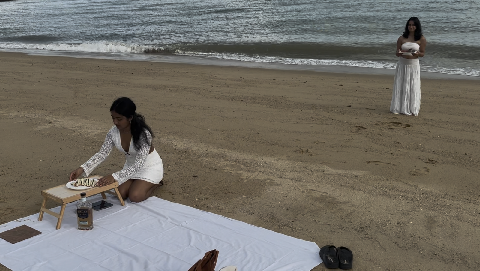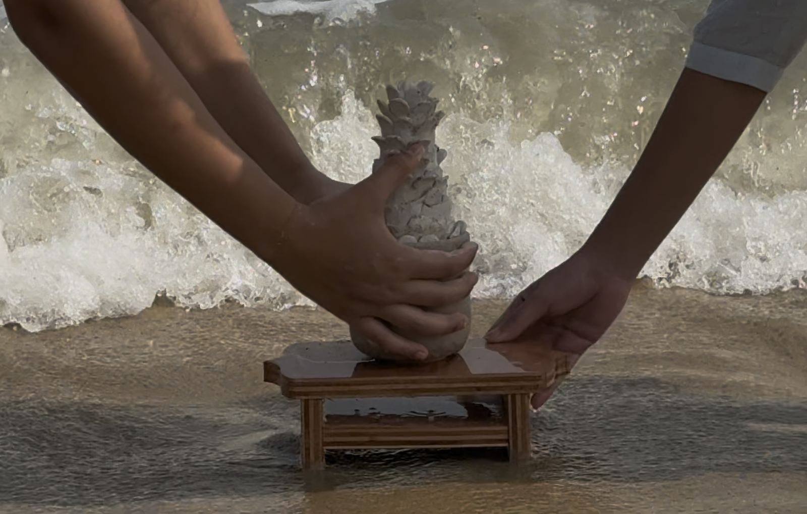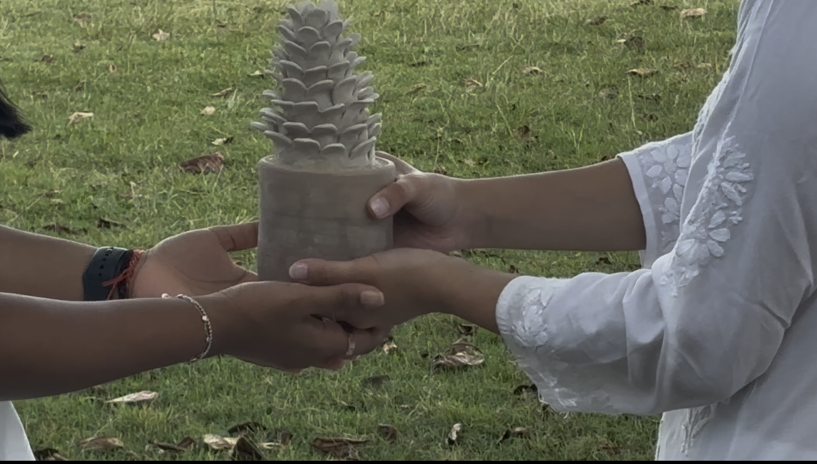 Moksha is a future after-death service system that blends tradition, sustainability, and technology to create deeply personal farewells. It is inspired by the idea of moksha—the release of the soul—and by rituals like immersing clay idols in water. In this system, the cremation ashes are mixed with biodegradable clay and shaped into objects that represent the life of the person who has passed, such as a favourite item or symbol. These sculptures dissolve in water on the 13th day, marking emotional release and remembrance. My role as the Grief Alchemist was to shape the emotional journey through a method I created, called The Thought Weaving Process. It is a guided counselling session that helps them express grief, understand their emotions, and set intentions for healing. Family members wear a neuro-sensing headset that captures their emotional projections. As they think of meaningful objects, places, or moments, these neural patterns generate a personalised 3D environment. Within this space, holograms, scents, and symbolic objects help them process their loss while gently moving toward acceptance.For this project, We created the persona Jehangir K., an elderly British-Parsi man who loved art, travel, pinecones, whiskey, and simple family rituals. To show how Moksha works in a real scenario, I mapped his entire after-death journey. In Jehangir K.’s Thought Weaving session, his adopted son’s projections created a world filled with Jehangir’s essence—whiskey notes, the hum of a tattoo gun, and pieces of Chinese pottery. Objects appeared and dissolved, symbolising how memories shift and fade, like a pine cone crumbling in their hands. To honour these symbols, the family crafted a clay sculpture of a whiskey glass holding a pinecone, echoing what emerged in the session. On the final day, they immersed this piece in water as part of their chosen ritual—a quiet act of letting go. The experience closed with Jehangir preparing chutney sandwiches, leaving his son with a lasting yet light imprint of his warmth.