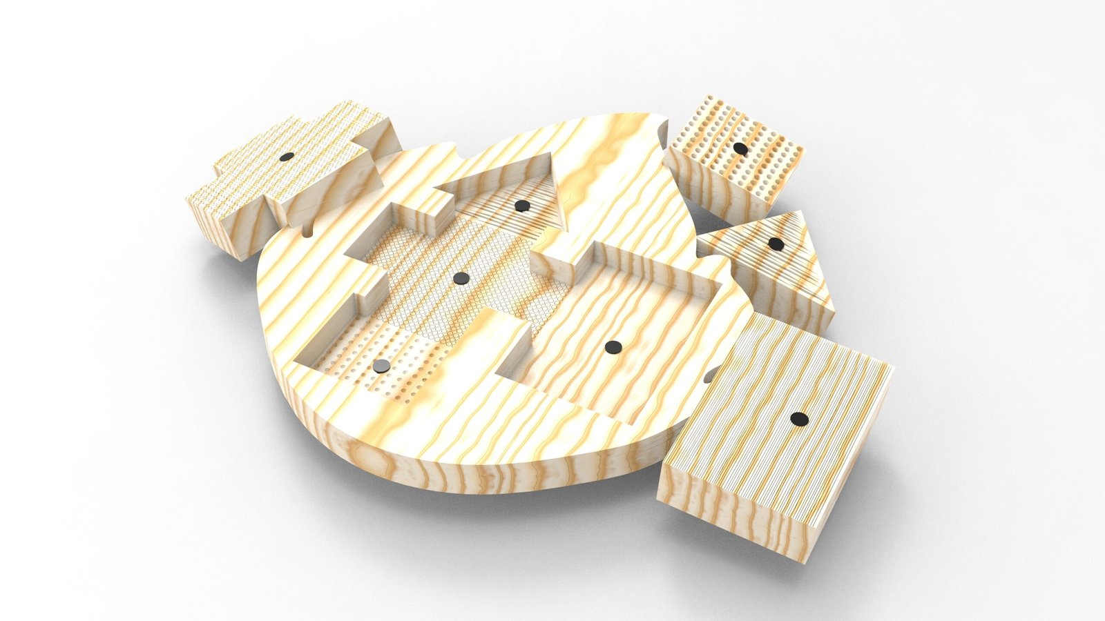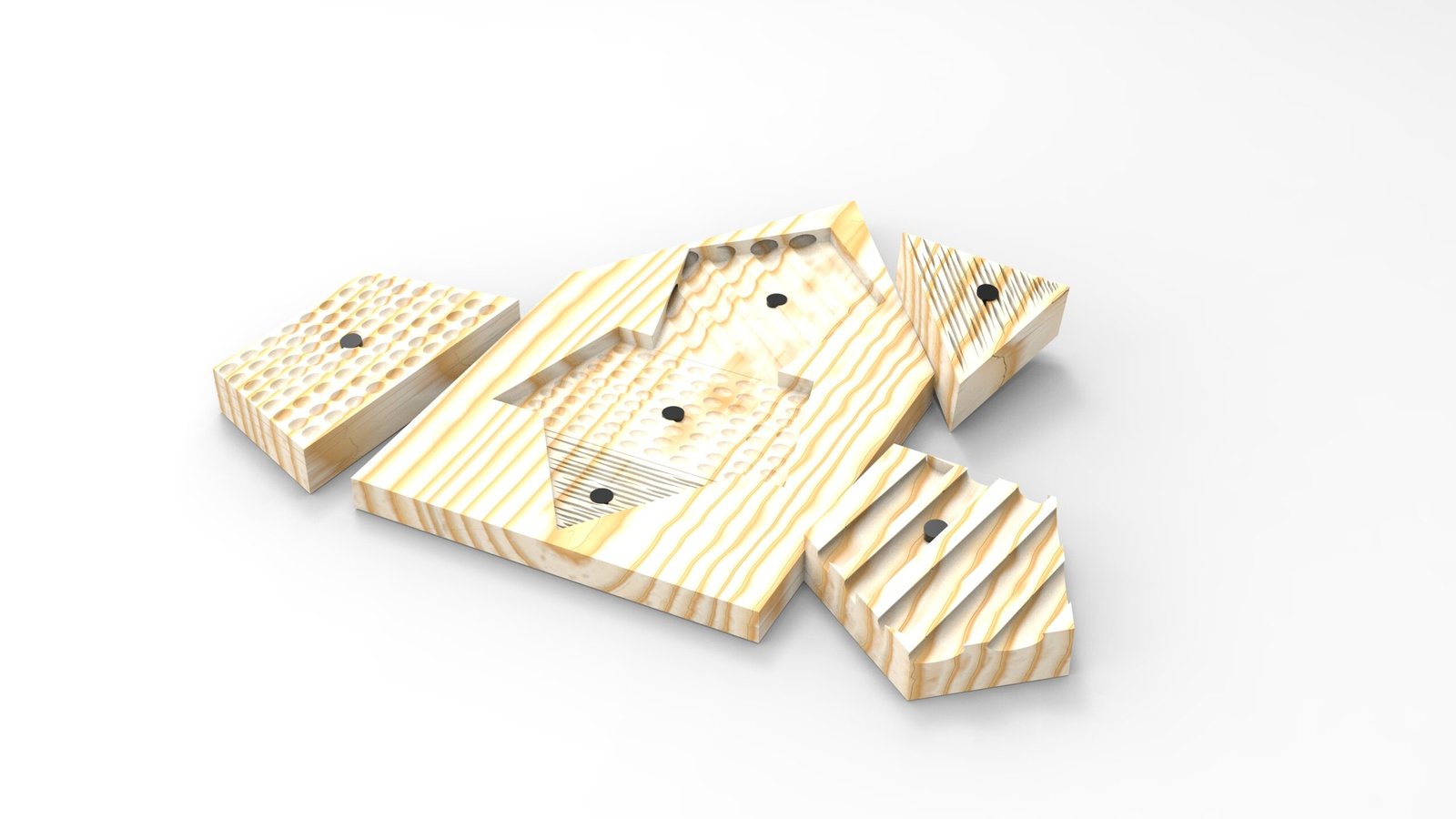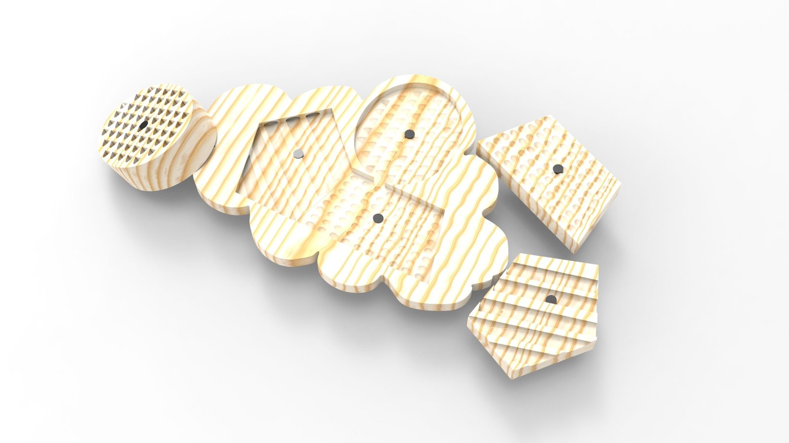 Tactual Twist is an innovative wooden puzzle that introduces seven distinct geometrical shapes adorned with unique textures, allowing visually impaired toddlers aged 2 and above to explore different surfaces through a tactile playground. It offers four captivating layouts – Cloud, Fire, Teardrop, and Hut – representing familiar shapes in the world, each layout telling a sensory story. Beyond conventional play, Tactual Twist incorporates shape and texture recognition and matching, making it an educational companion for early learning and sensory exploration. It promotes cognitive development through problem-solving and shape/texture matching, ensuring inclusive play for blind children.